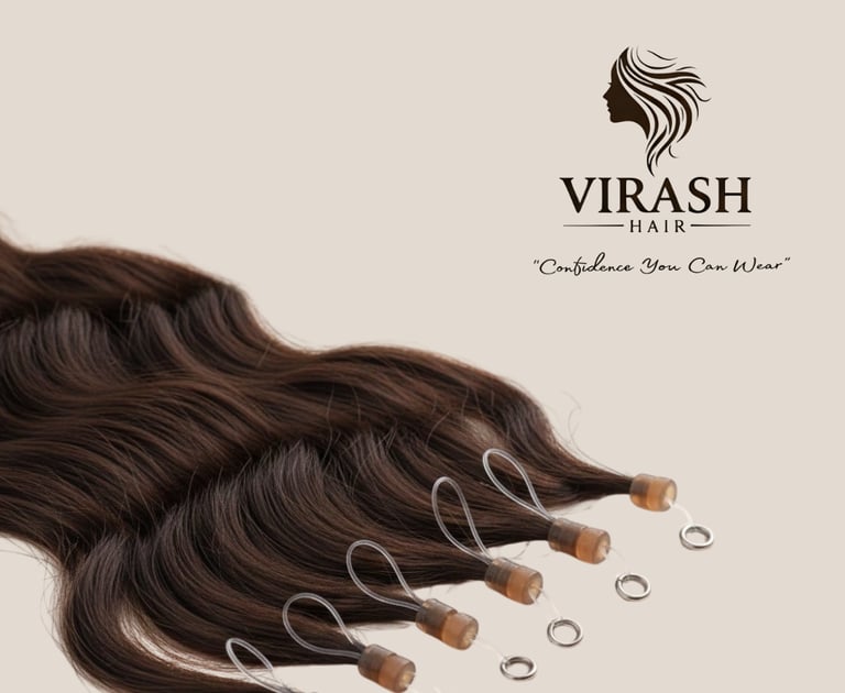 Our Micro Ring Extension Wigs offer a safe and durable solution for women who want long-term length and volume without the use of heat or adhesives. This "cold application" method uses small, silicone-lined rings to secure the extensions to your natural hair, ensuring a firm hold while protecting your strands from damage.