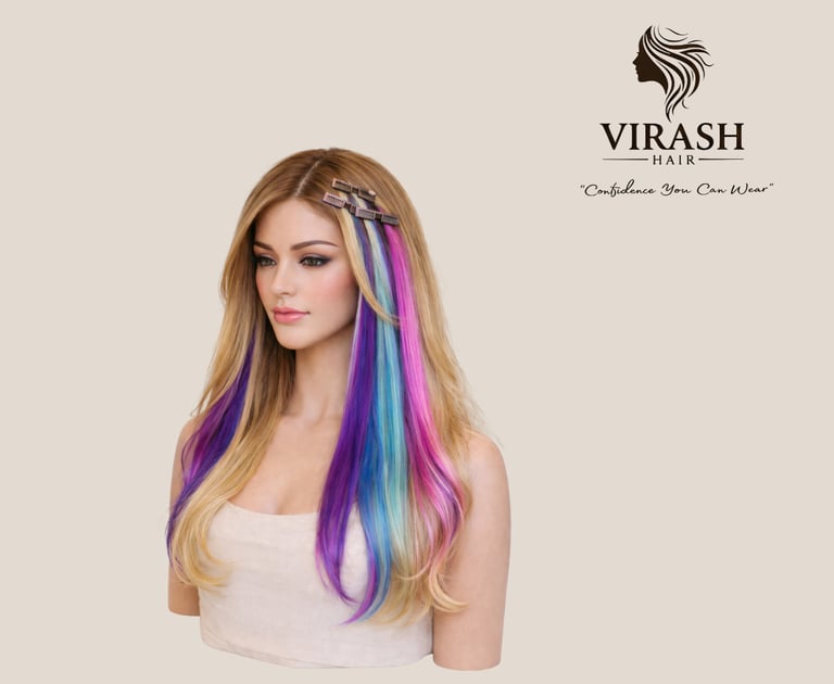These are the perfect, chemical-free solution for women looking to add a pop of color or dimension to their style without the commitment of hair dye. These lightweight pieces use discreet, pressure-sensitive clips to attach instantly, allowing you to customize your look with highlights or lowlights in seconds.