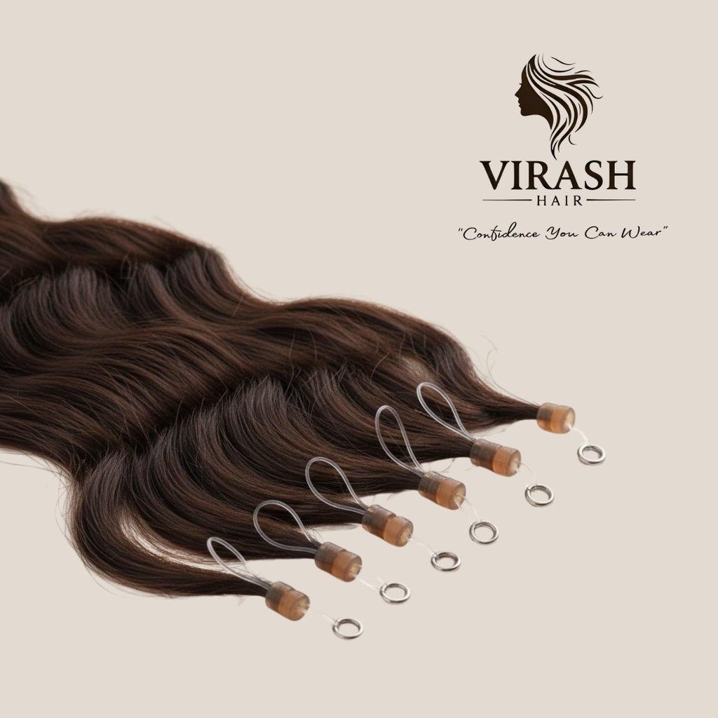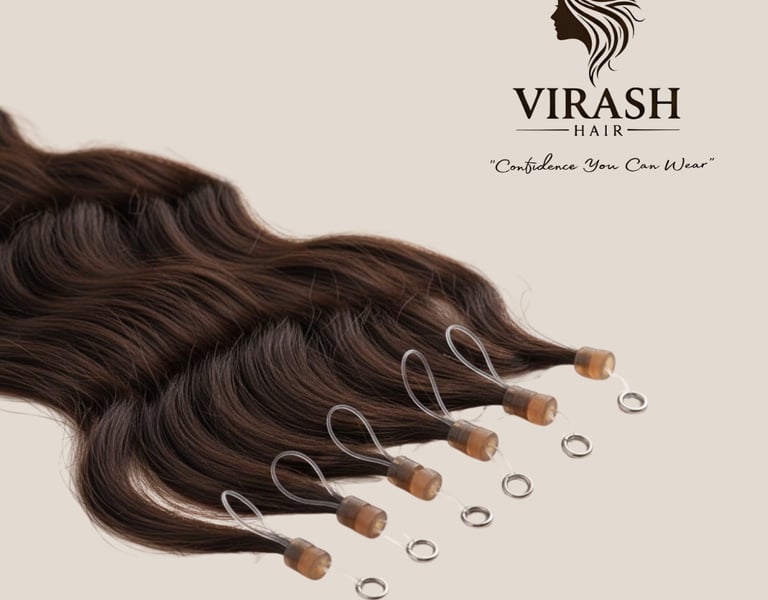 Our Micro Ring Extension Wigs offer a safe and durable solution for women who want long-term length and volume without the use of heat or adhesives. This "cold application" method uses small, silicone-lined rings to secure the extensions to your natural hair, ensuring a firm hold while protecting your strands from damage.